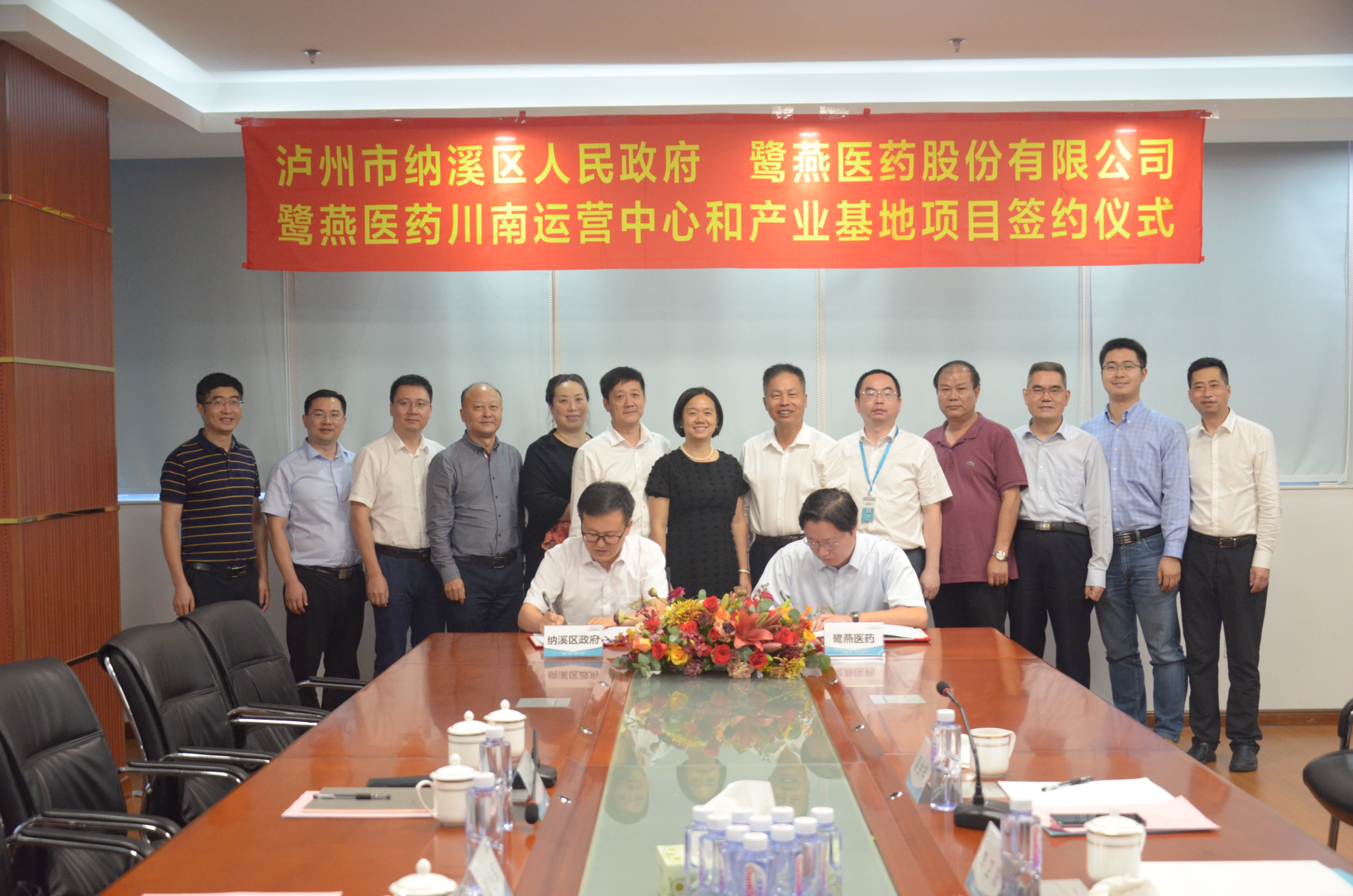 10月16日,鷺燕醫藥股份有限公司與四川省瀘州市納溪區人民政府在鷺燕醫藥廈門總部大廈舉行鷺燕醫藥川南運營中心和產業基地項目簽約儀式。瀘州市納溪區區委書記徐利、鷺燕醫藥董事長兼總裁吳金祥以及雙方主要領導出席了此次儀式。