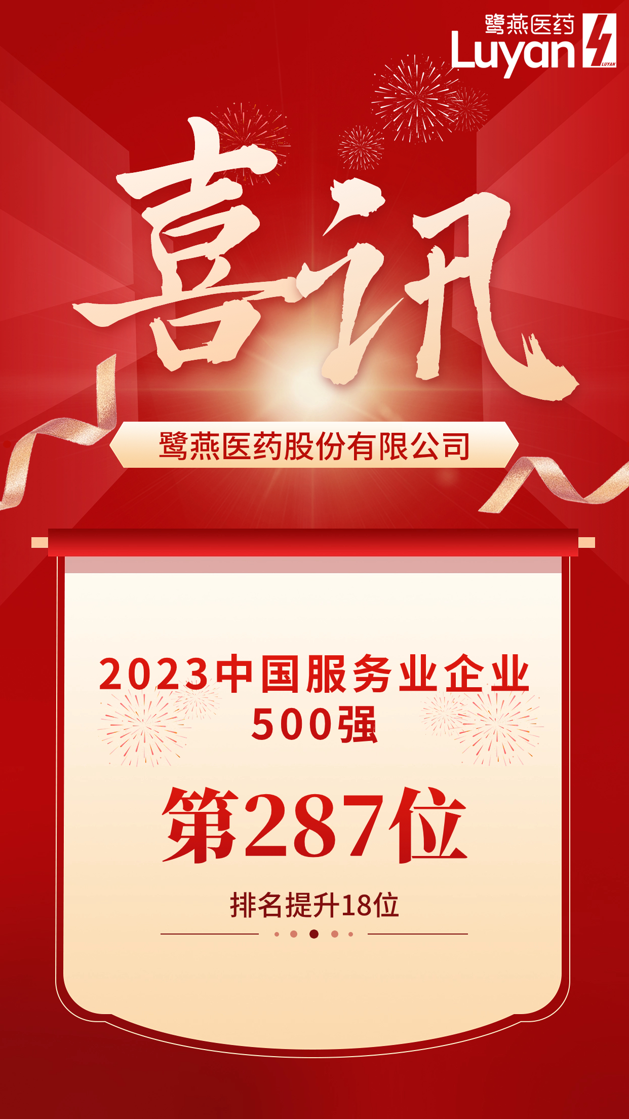 鷺燕醫藥榮列2023中國服務業企業500強第287位