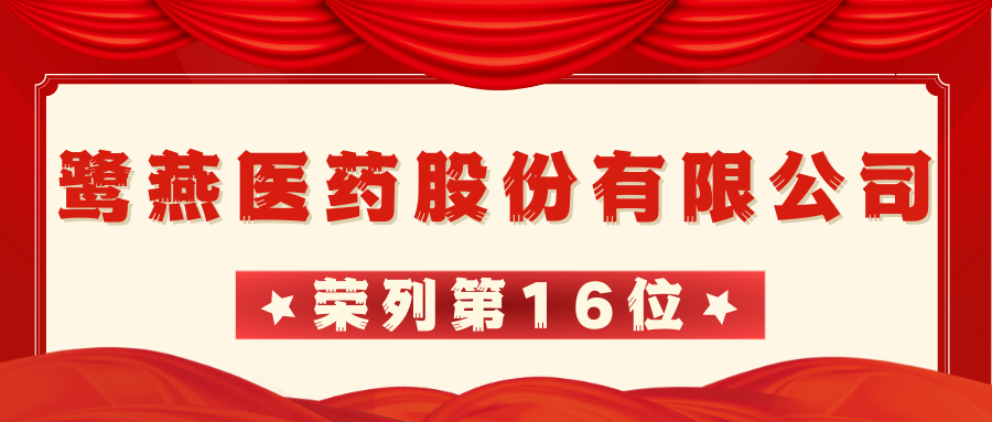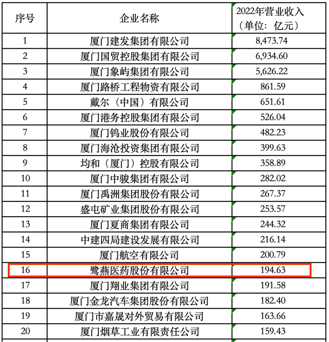 2023年11月25日,廈門企業和企業家聯合會發布2023廈門企業百強榜單,鷺燕醫藥股份有限公司榮列第16位!