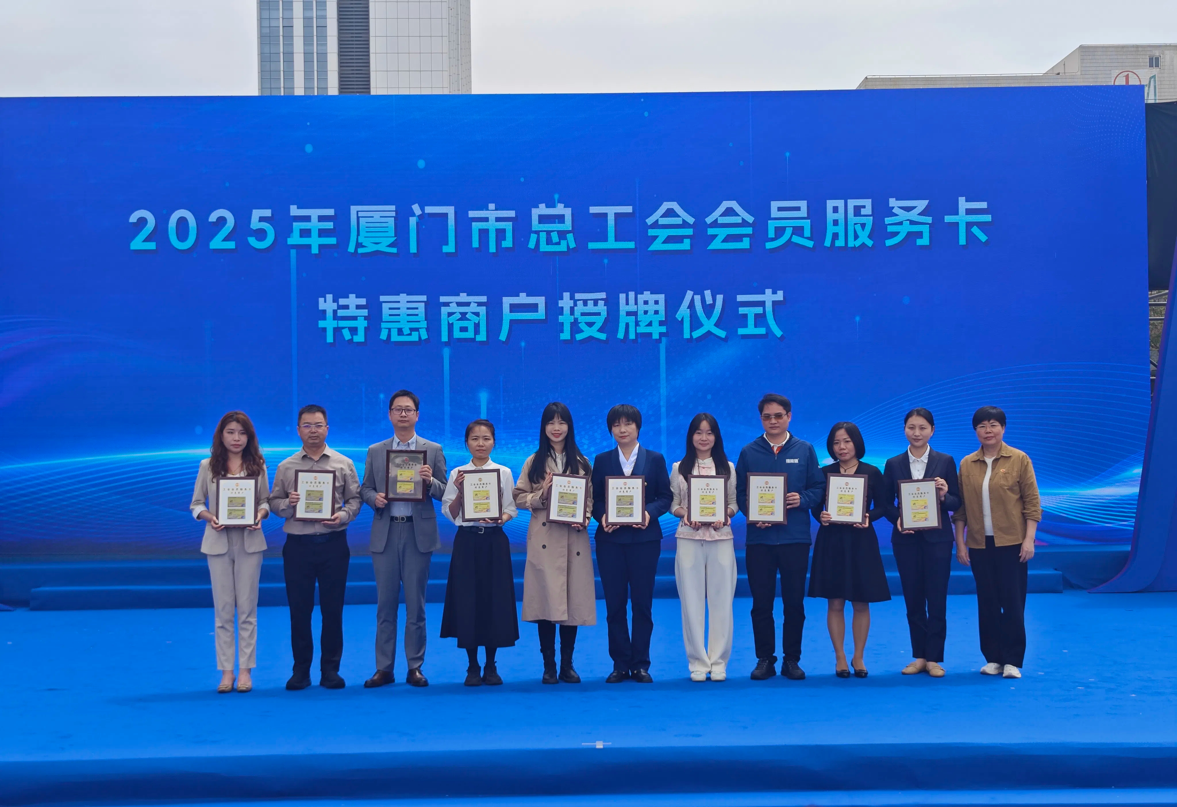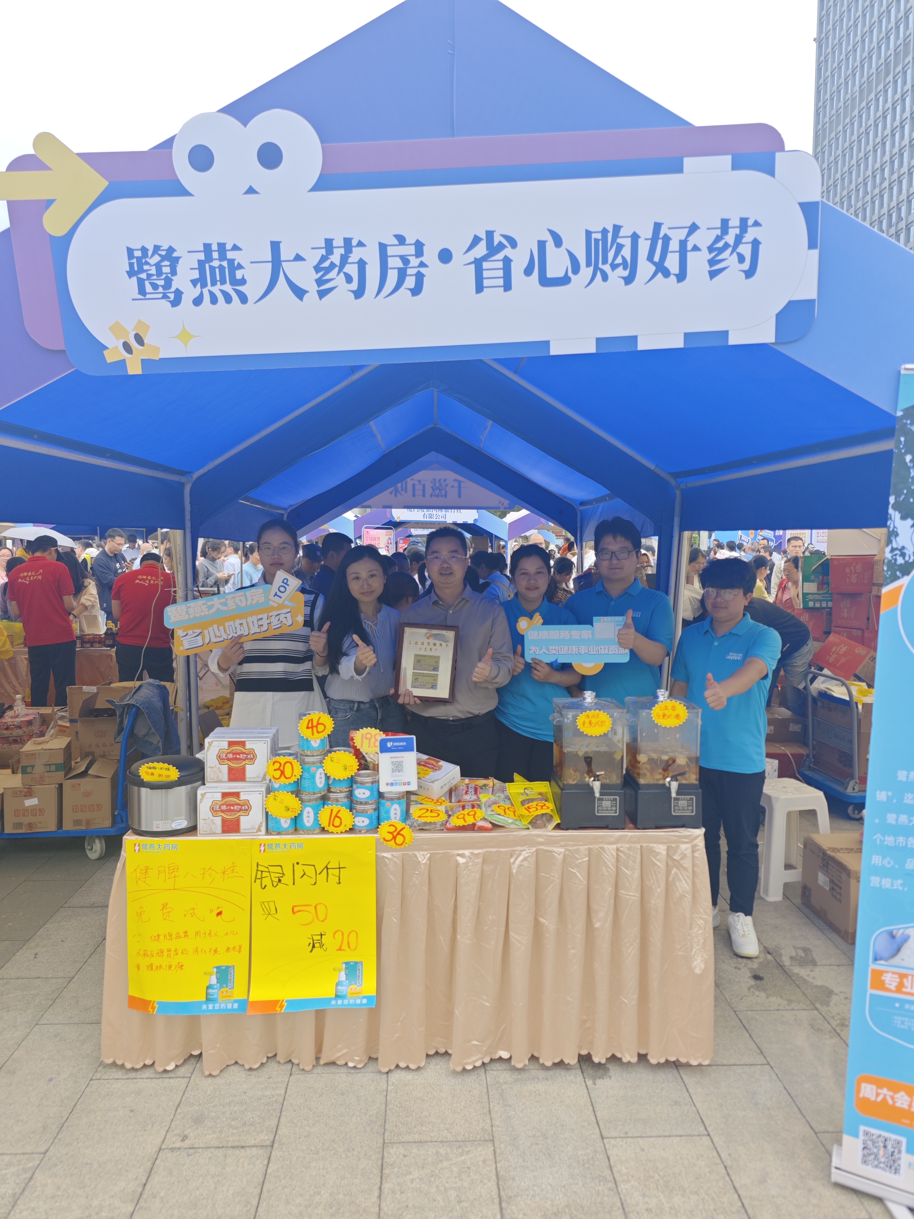 4月13日,由廈門市總工會指導(dǎo)、市機(jī)關(guān)事業(yè)工會聯(lián)合會主辦的“惠工聚益 共享美好”2025年工會集市活動在五一廣場盛大啟幕。廈門鷺燕大藥房作為2025年“工會會員服務(wù)卡特惠商戶”首批新簽約的10家優(yōu)質(zhì)企業(yè)正式獲得授牌,并攜多項健康惠民服務(wù)亮相。