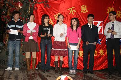 下午4:00整,在《好日子》歡快的歌舞中,表彰聯(lián)歡會正式拉開了序幕。會上共頒發(fā)了九個獎項,分別是最佳員工獎6人,最佳藥師獎2人,最佳新人獎、最佳參與獎、最佳貢獻(xiàn)獎各1人,最佳店長獎3人,最佳門店獎2個,還有兩個特殊的獎項:一是半年度毛利考核指標(biāo)完成相對值、絕對值各前3名的門店,二是2000年8月前入職的老員工獎。頒獎過程中還穿插了員工們自編、自導(dǎo)、自演的小節(jié)目。他們用優(yōu)美的舞姿、甜美的歌聲、俏皮搞笑的小品為杰出的先進(jìn)代表們喝彩、祝福,現(xiàn)場氣氛非常活躍,高潮迭起,一張張如花的笑靨遨游在一片歡樂的海洋……最后,在《感恩的心》的優(yōu)美的旋律和熱烈的掌聲中,活動暫告一個段落。